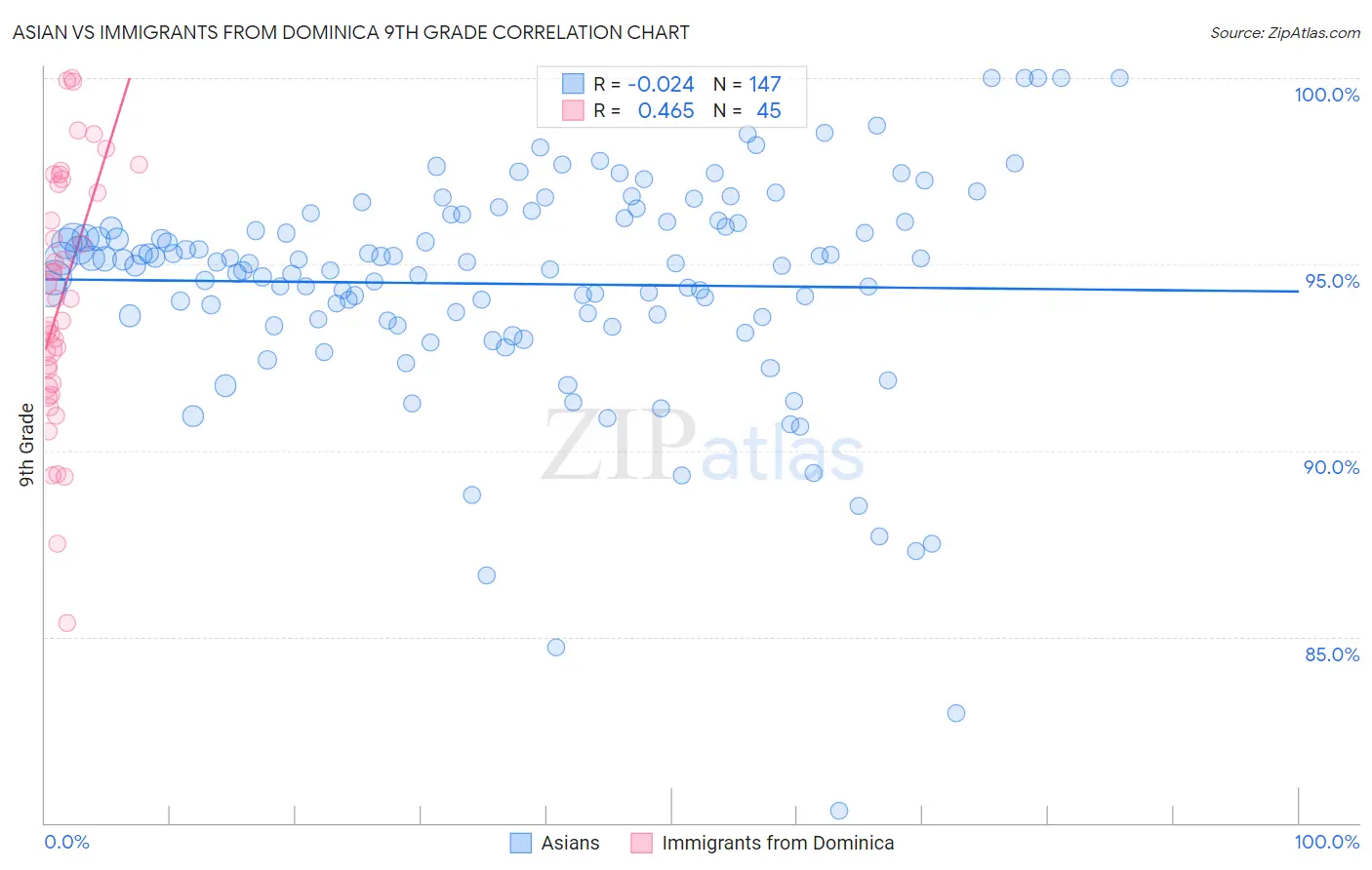 Asian vs Immigrants from Dominica 9th Grade Correlation Chart