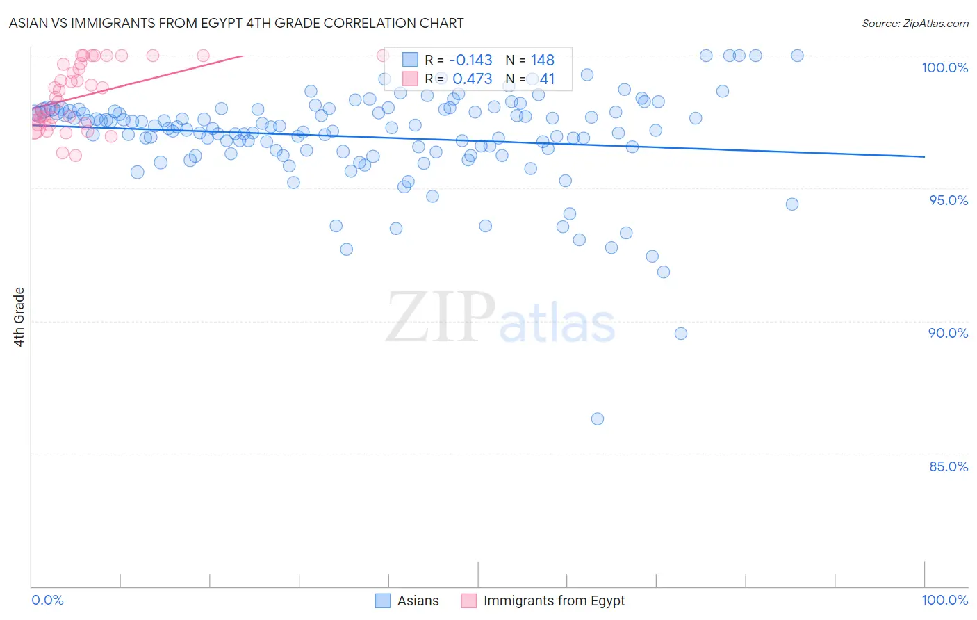 Asian vs Immigrants from Egypt 4th Grade Correlation Chart