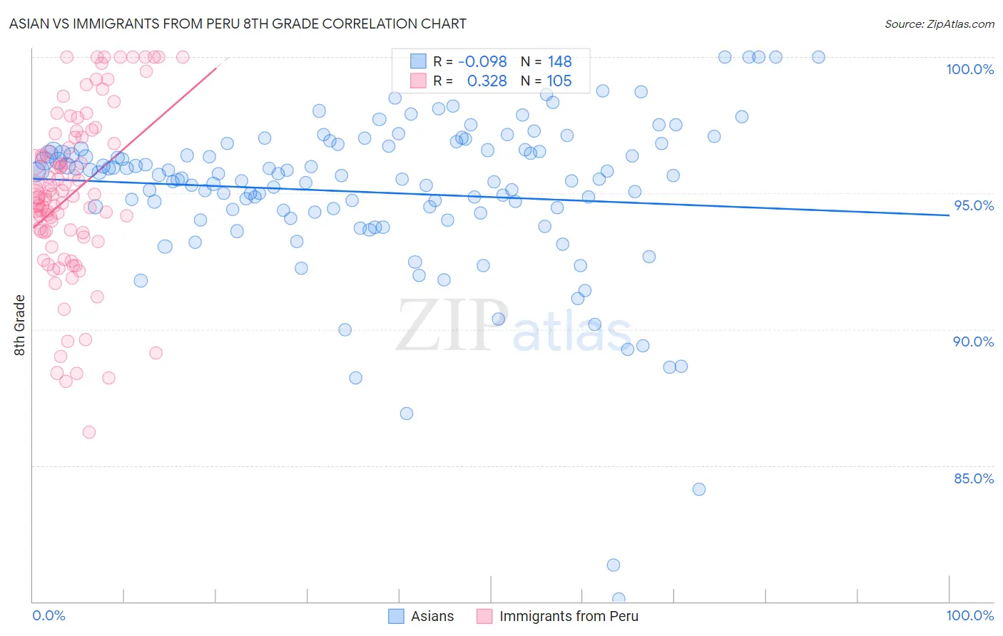 Asian vs Immigrants from Peru 8th Grade Correlation Chart
