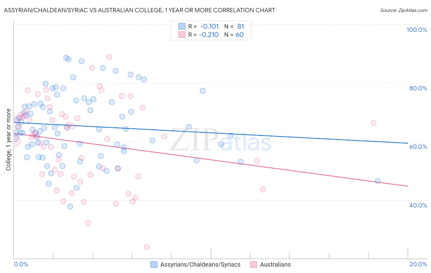 Assyrian/Chaldean/Syriac vs Australian College, 1 year or more Correlation Chart