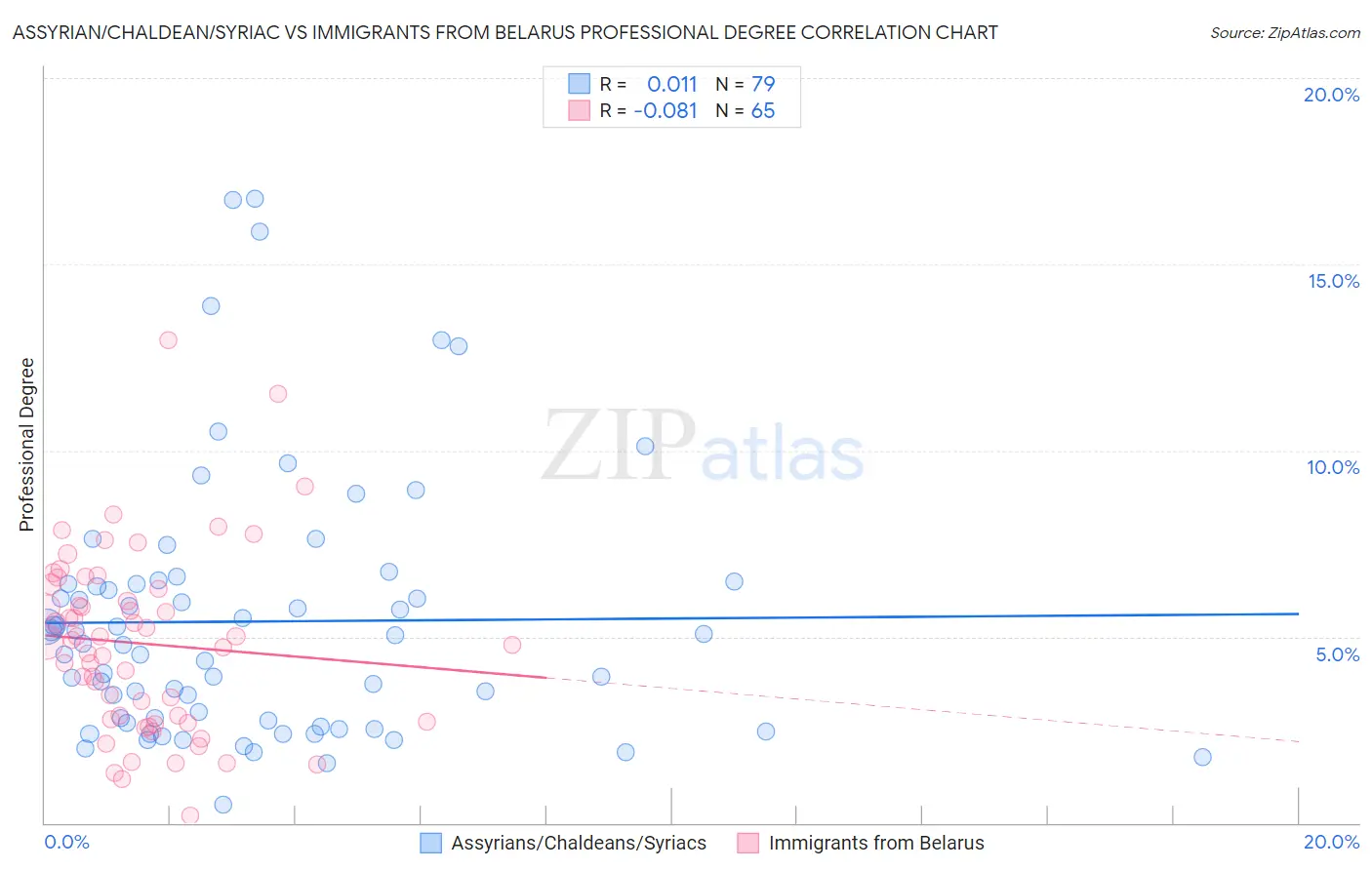 Assyrian/Chaldean/Syriac vs Immigrants from Belarus Professional Degree Correlation Chart