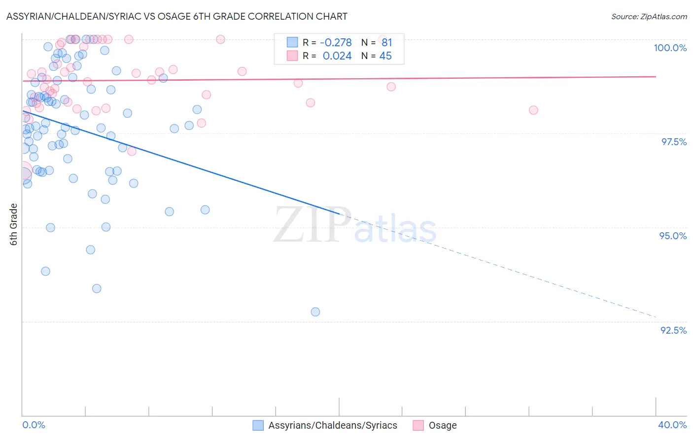 Assyrian/Chaldean/Syriac vs Osage 6th Grade Correlation Chart