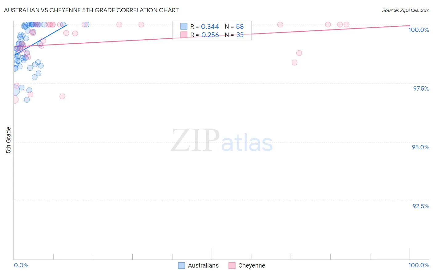 Australian vs Cheyenne 5th Grade Correlation Chart