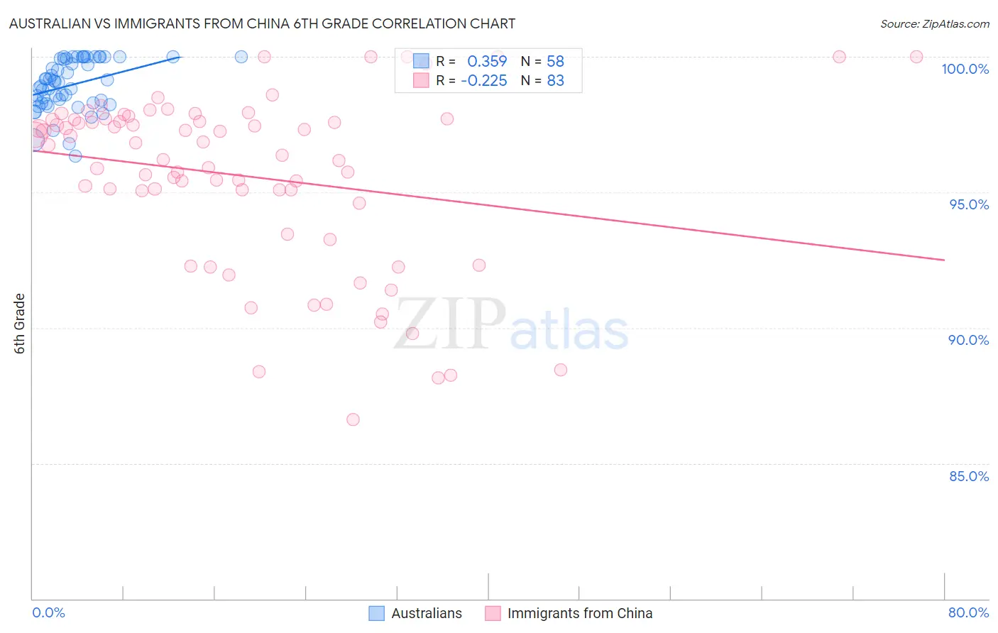 Australian vs Immigrants from China 6th Grade Correlation Chart
