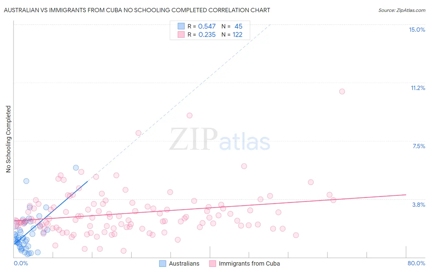 Australian vs Immigrants from Cuba No Schooling Completed Correlation Chart