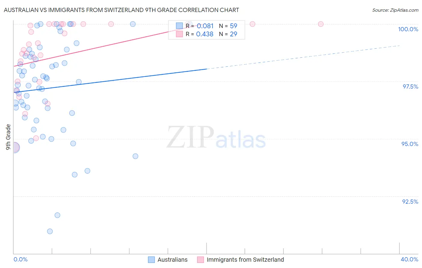 Australian vs Immigrants from Switzerland 9th Grade Correlation Chart