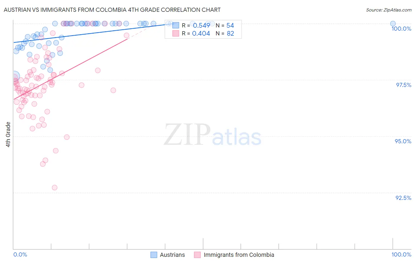 Austrian vs Immigrants from Colombia 4th Grade Correlation Chart