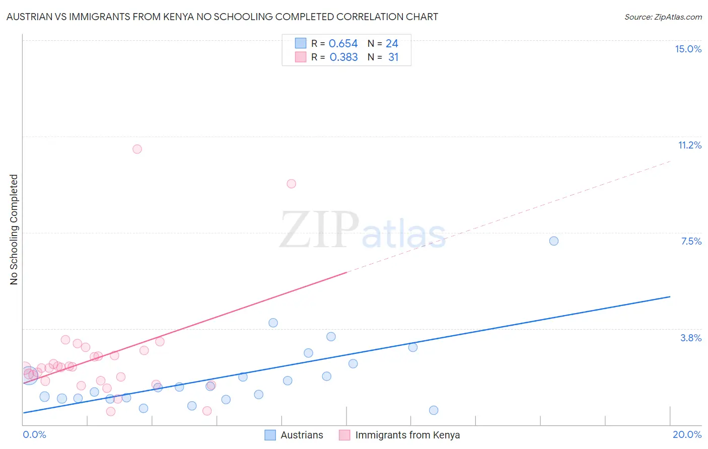 Austrian vs Immigrants from Kenya No Schooling Completed Correlation Chart