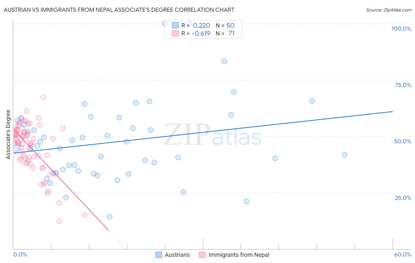 Austrian vs Immigrants from Nepal Associate's Degree Correlation Chart