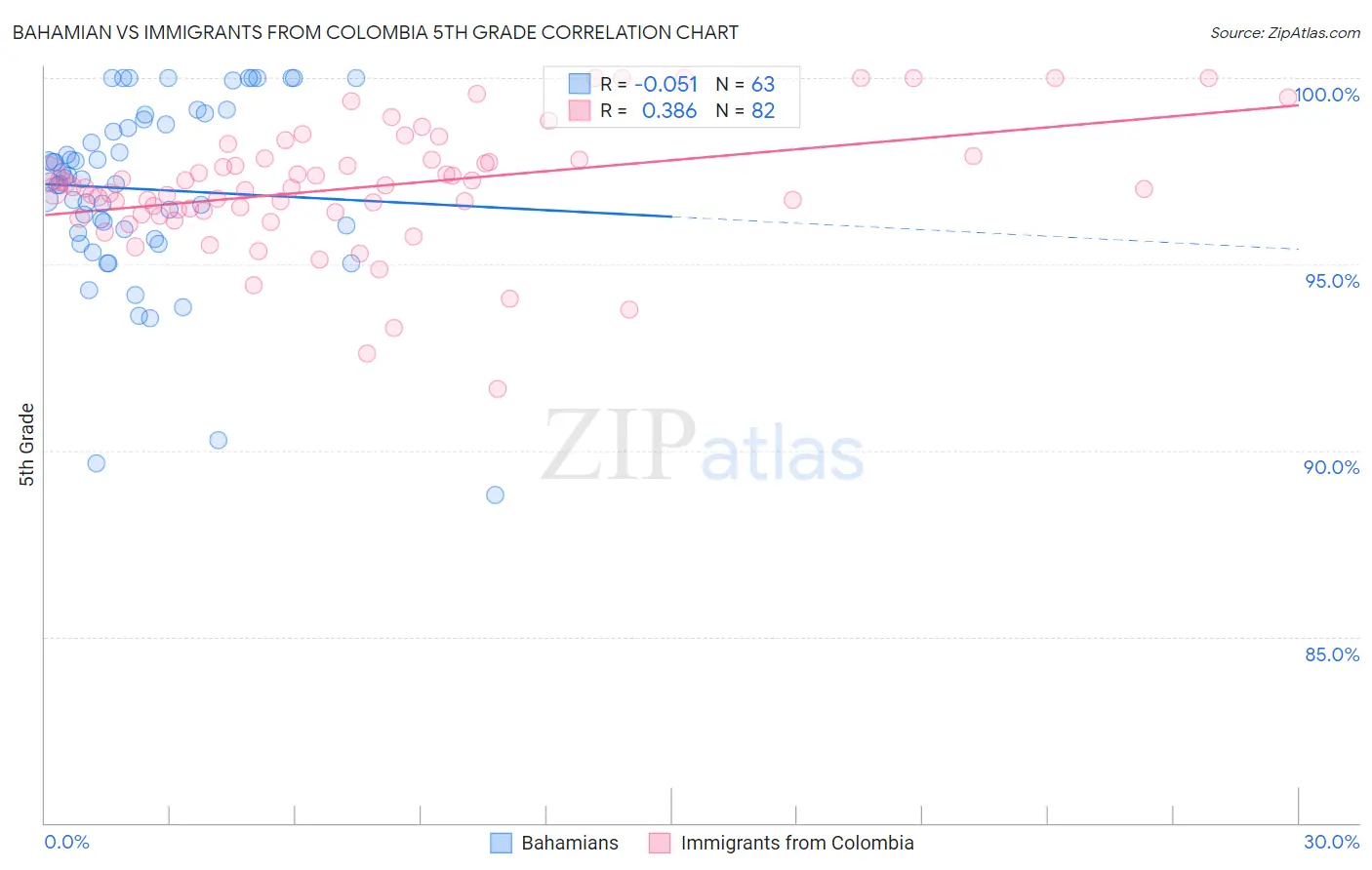 Bahamian vs Immigrants from Colombia 5th Grade Correlation Chart