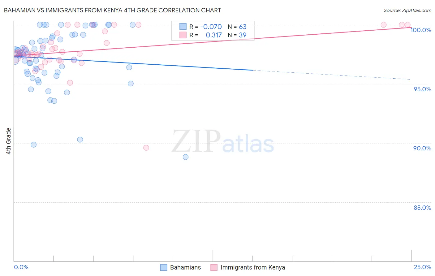 Bahamian vs Immigrants from Kenya 4th Grade Correlation Chart