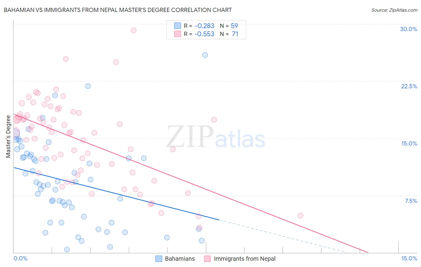 Bahamian vs Immigrants from Nepal Master's Degree Correlation Chart
