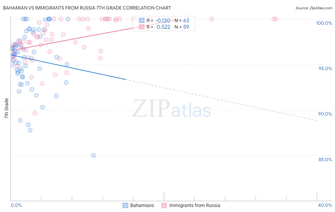 Bahamian vs Immigrants from Russia 7th Grade Correlation Chart
