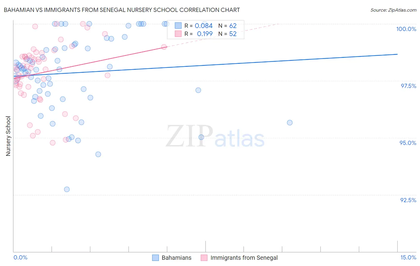 Bahamian vs Immigrants from Senegal Nursery School Correlation Chart