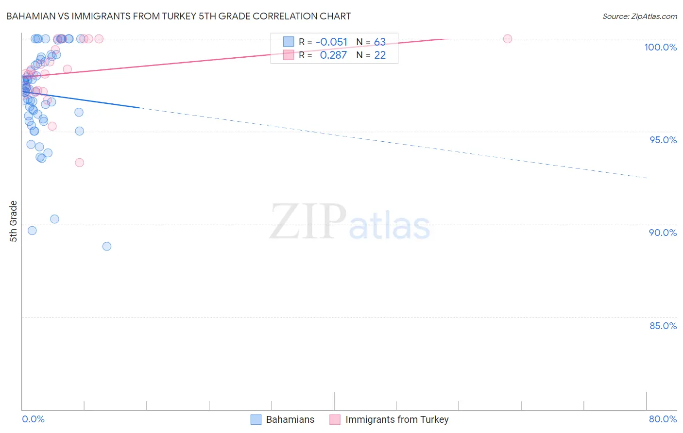Bahamian vs Immigrants from Turkey 5th Grade Correlation Chart