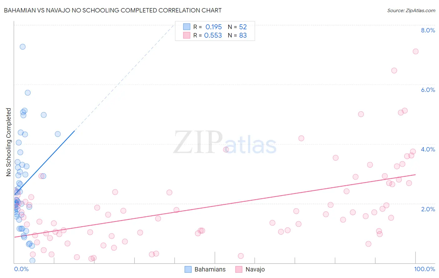 Bahamian vs Navajo No Schooling Completed Correlation Chart