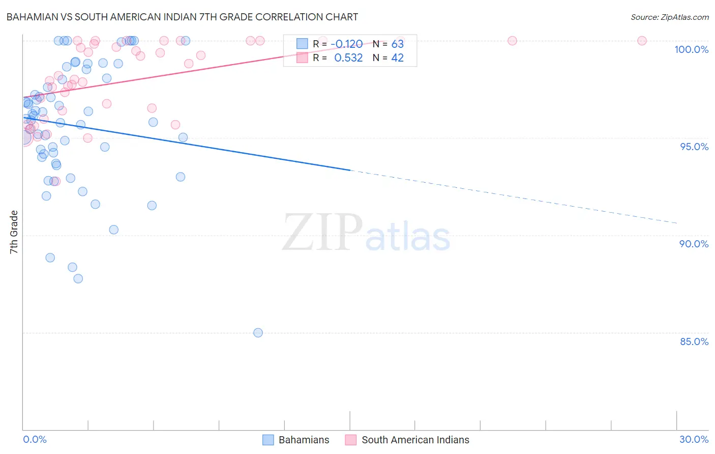 Bahamian vs South American Indian 7th Grade Correlation Chart