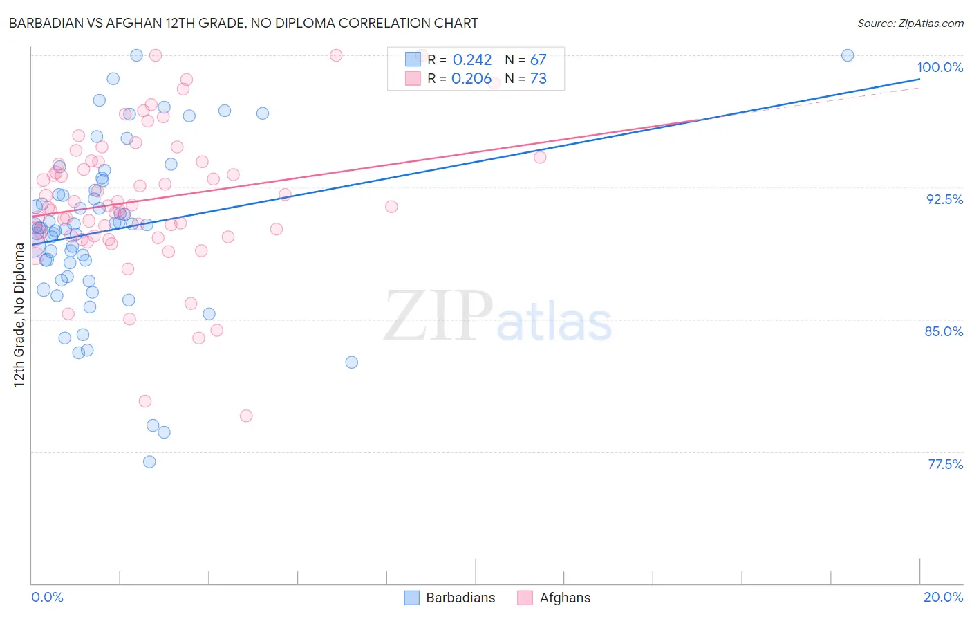 Barbadian vs Afghan 12th Grade, No Diploma Correlation Chart