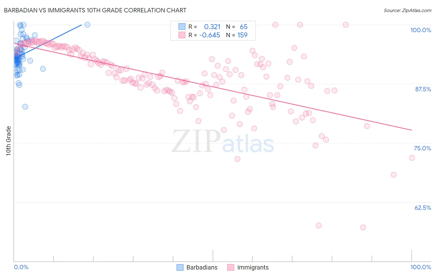 Barbadian vs Immigrants 10th Grade Correlation Chart