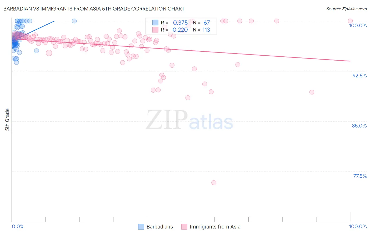 Barbadian vs Immigrants from Asia 5th Grade Correlation Chart