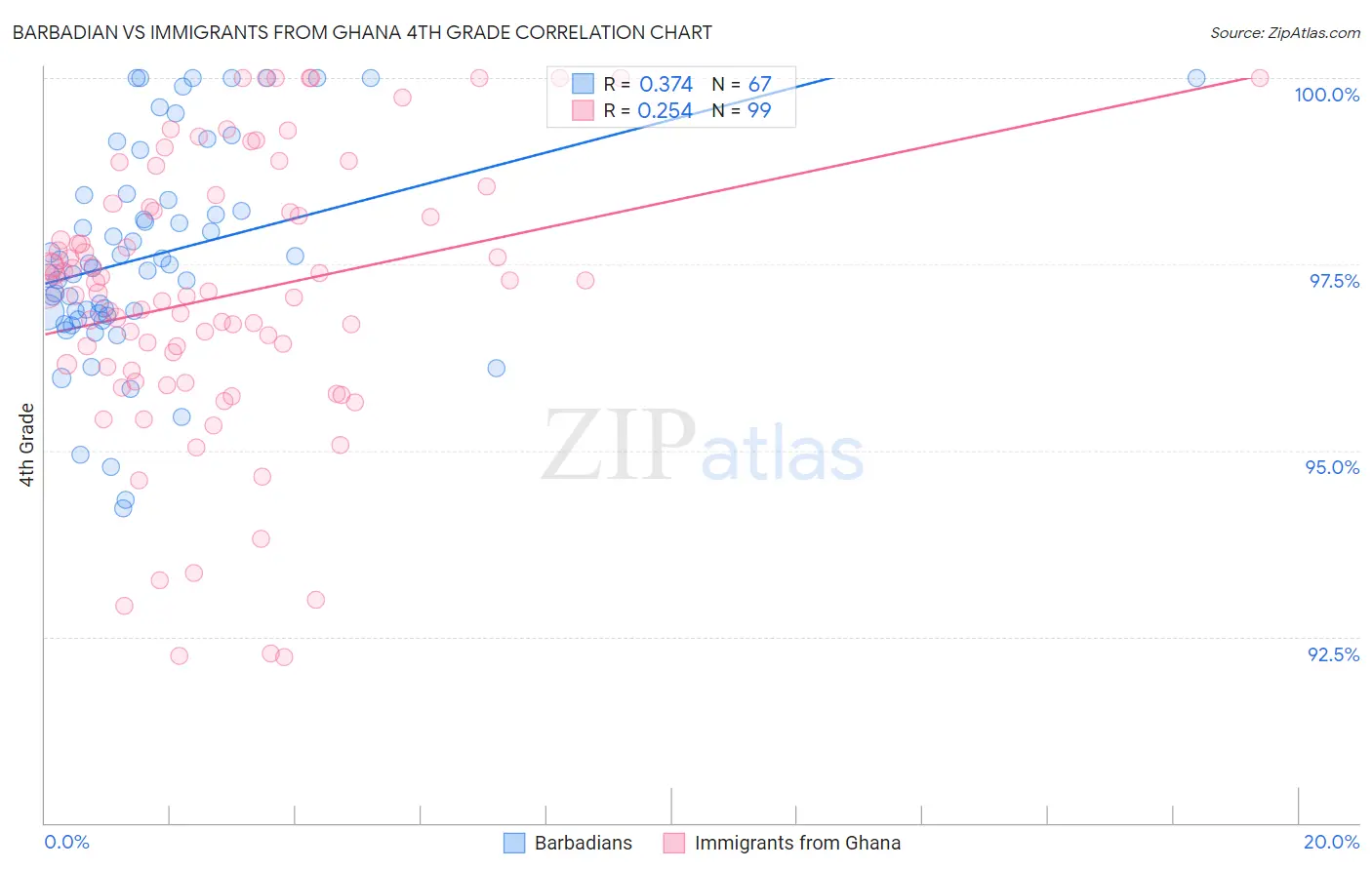 Barbadian vs Immigrants from Ghana 4th Grade Correlation Chart