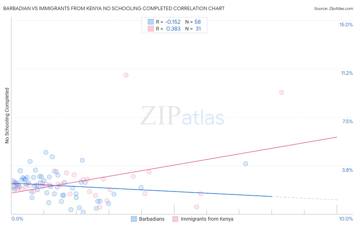 Barbadian vs Immigrants from Kenya No Schooling Completed Correlation Chart