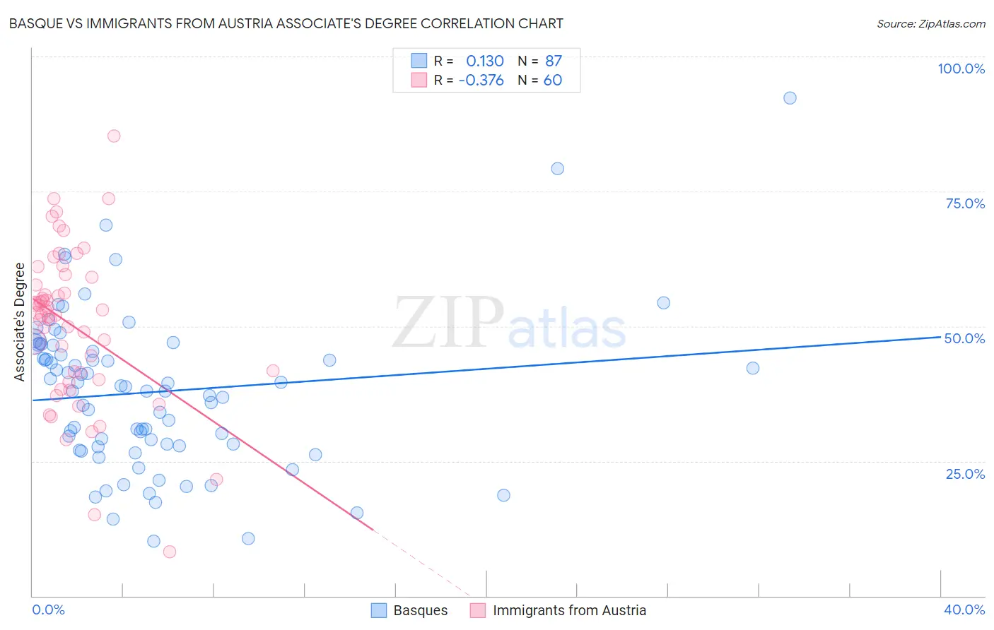 Basque vs Immigrants from Austria Associate's Degree Correlation Chart