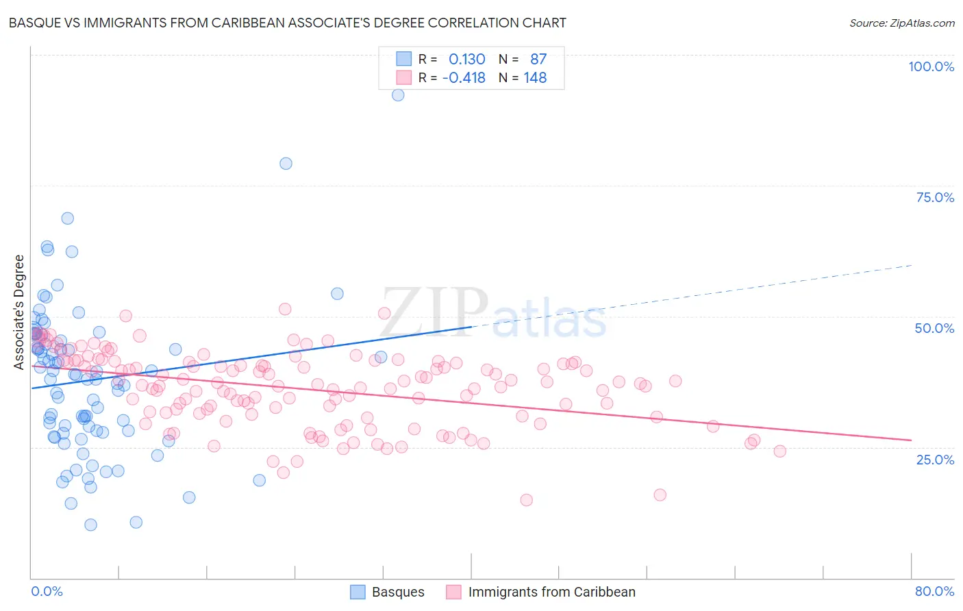 Basque vs Immigrants from Caribbean Associate's Degree Correlation Chart