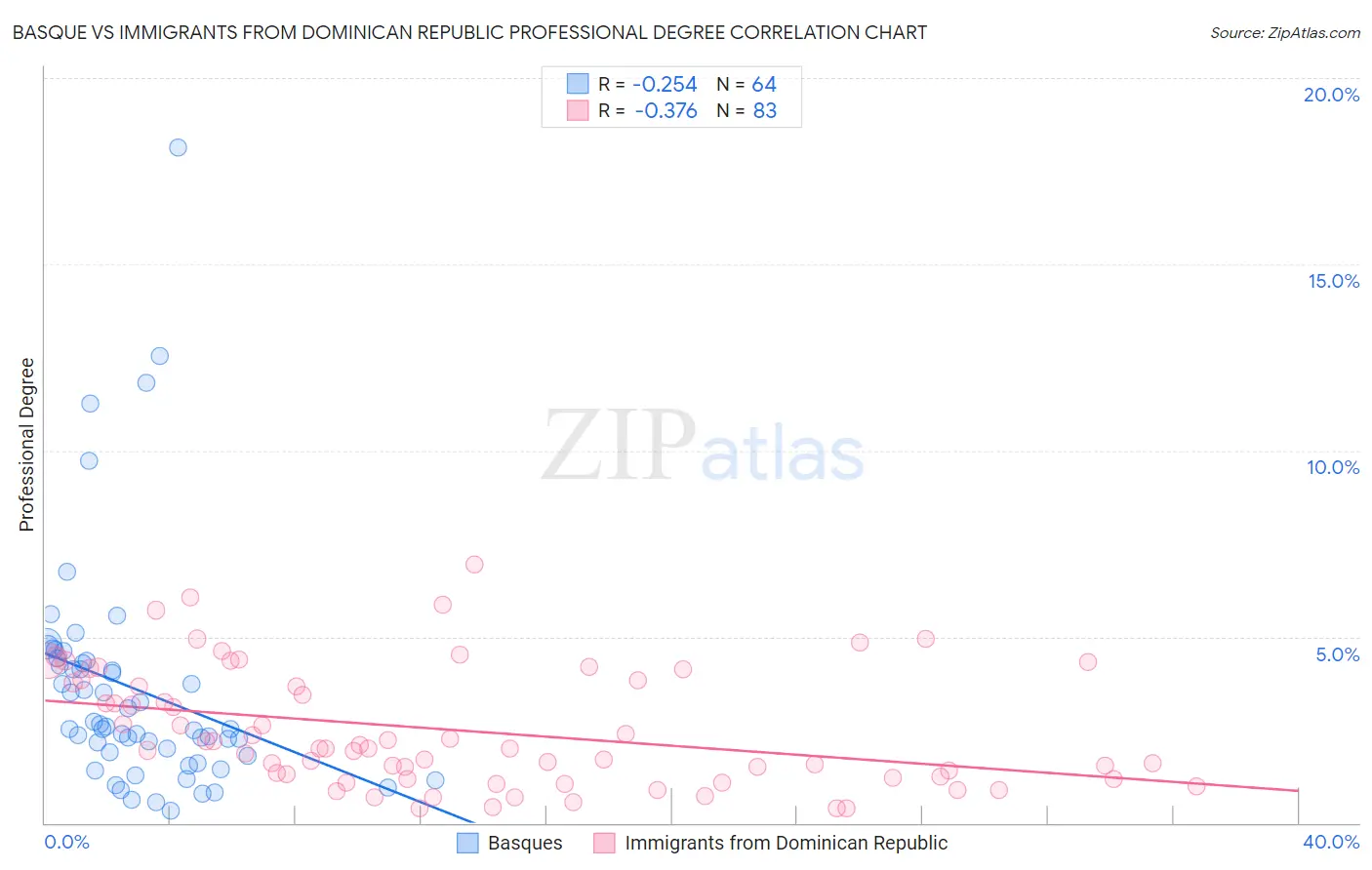 Basque vs Immigrants from Dominican Republic Professional Degree Correlation Chart