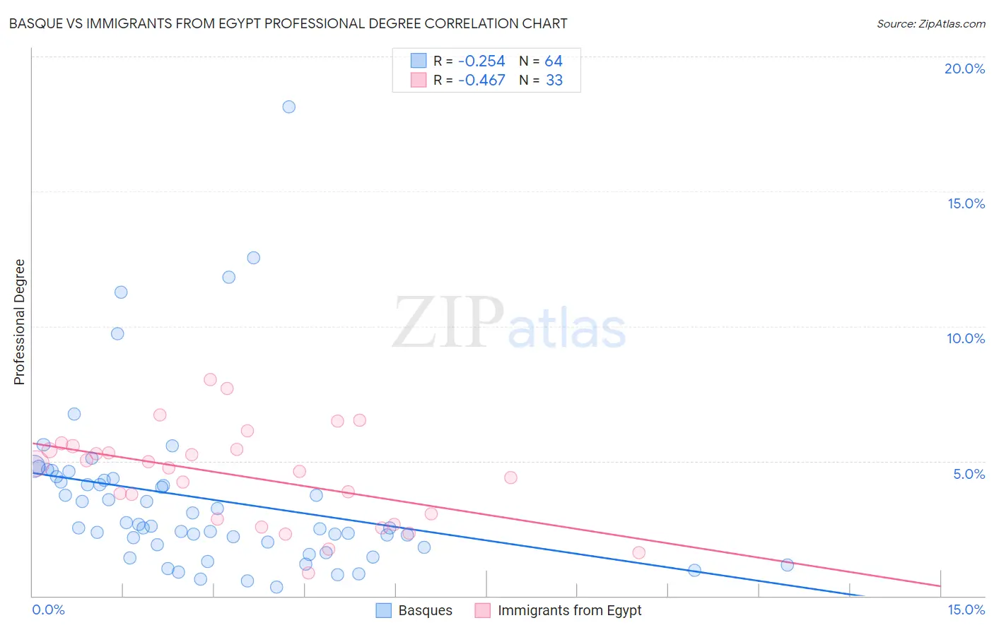 Basque vs Immigrants from Egypt Professional Degree Correlation Chart