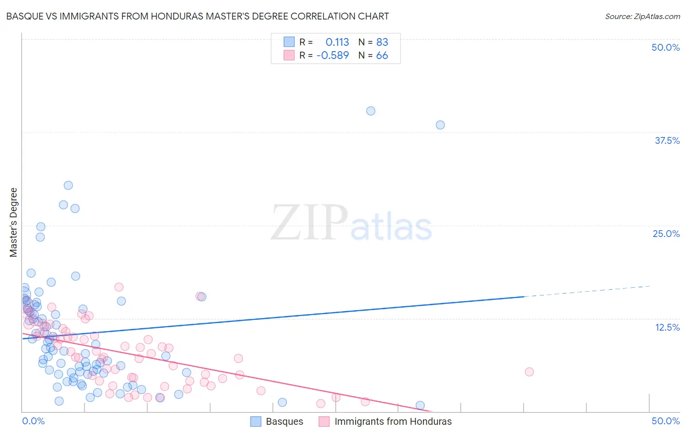 Basque vs Immigrants from Honduras Master's Degree Correlation Chart