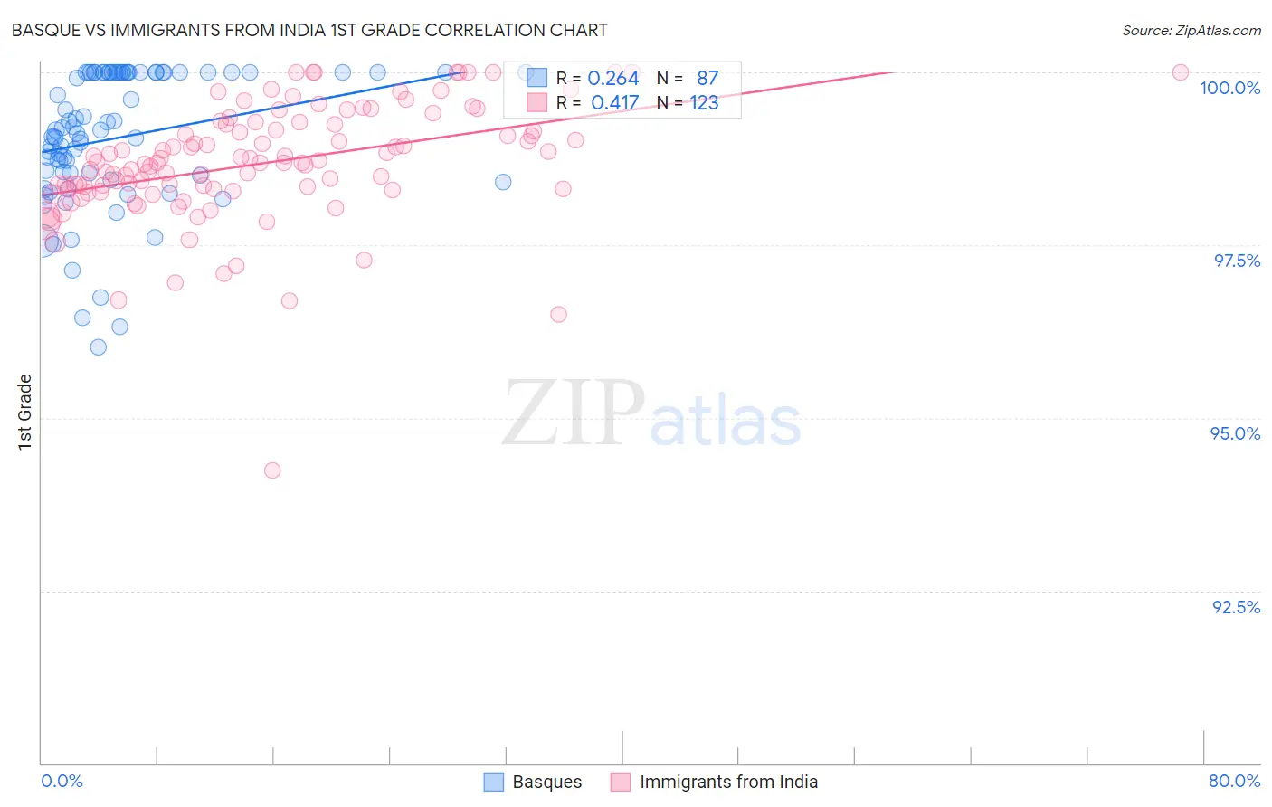 Basque vs Immigrants from India 1st Grade Correlation Chart