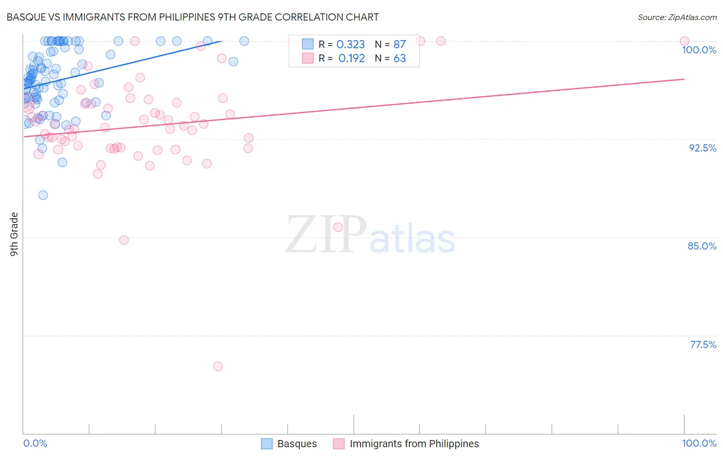 Basque vs Immigrants from Philippines 9th Grade Correlation Chart