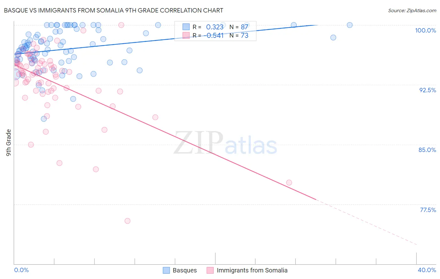 Basque vs Immigrants from Somalia 9th Grade Correlation Chart