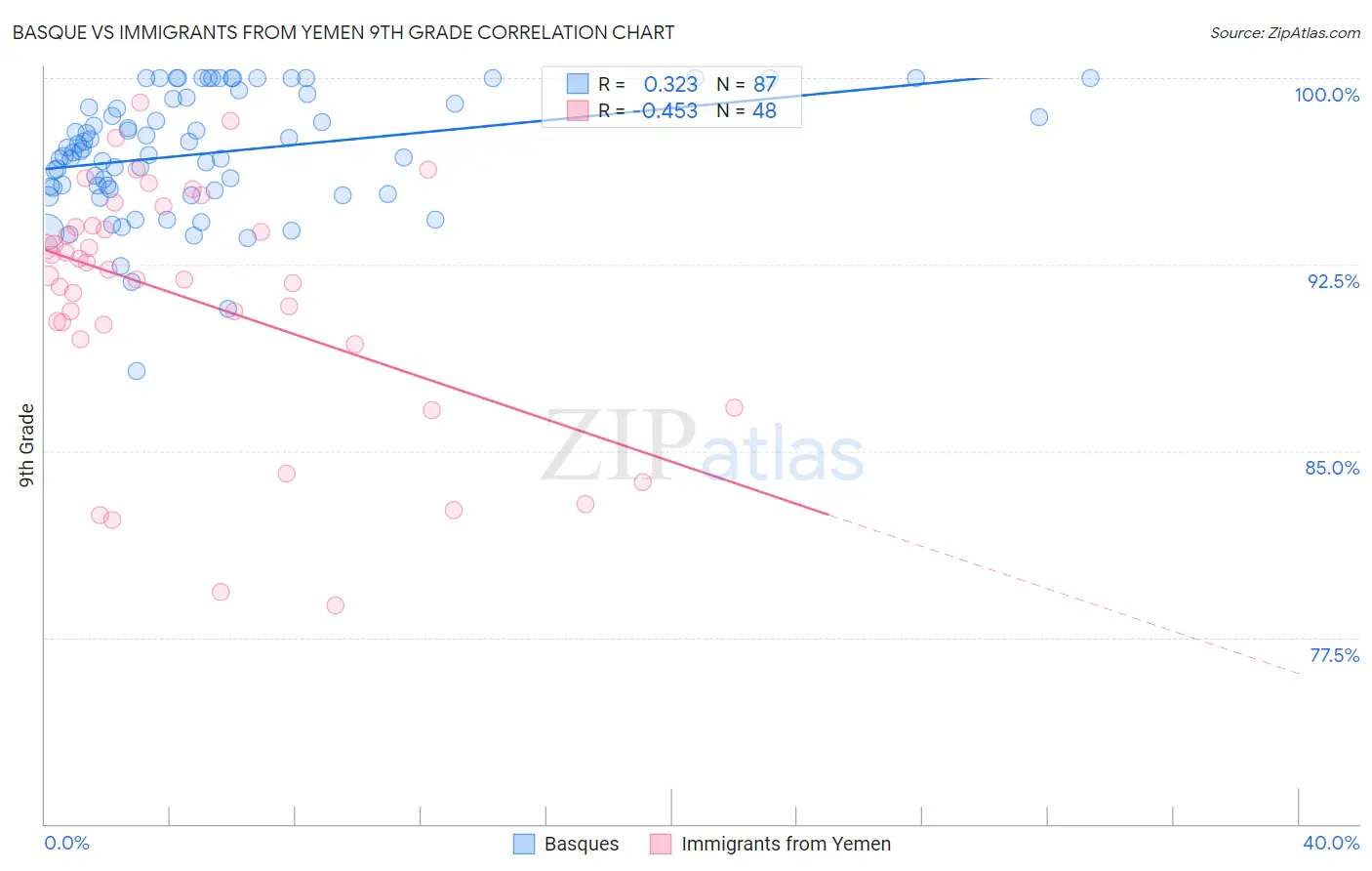 Basque vs Immigrants from Yemen 9th Grade Correlation Chart
