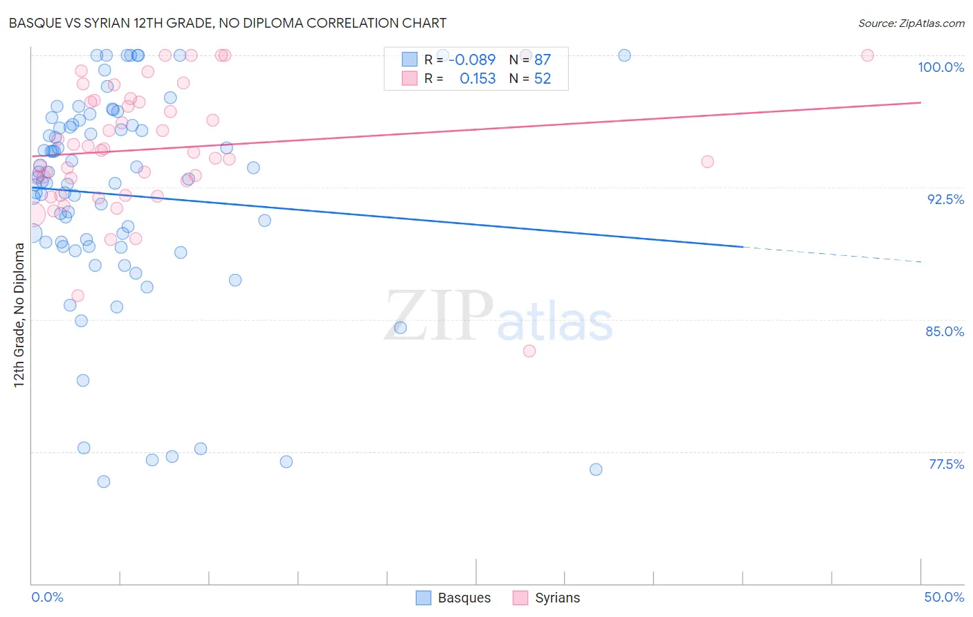 Basque vs Syrian 12th Grade, No Diploma Correlation Chart