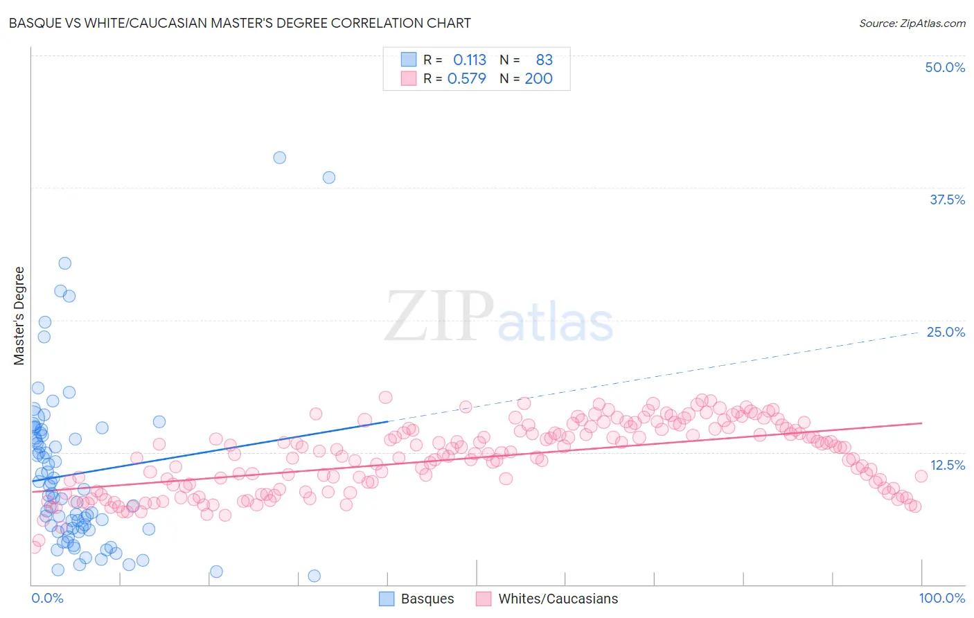 Basque vs White/Caucasian Master's Degree Correlation Chart