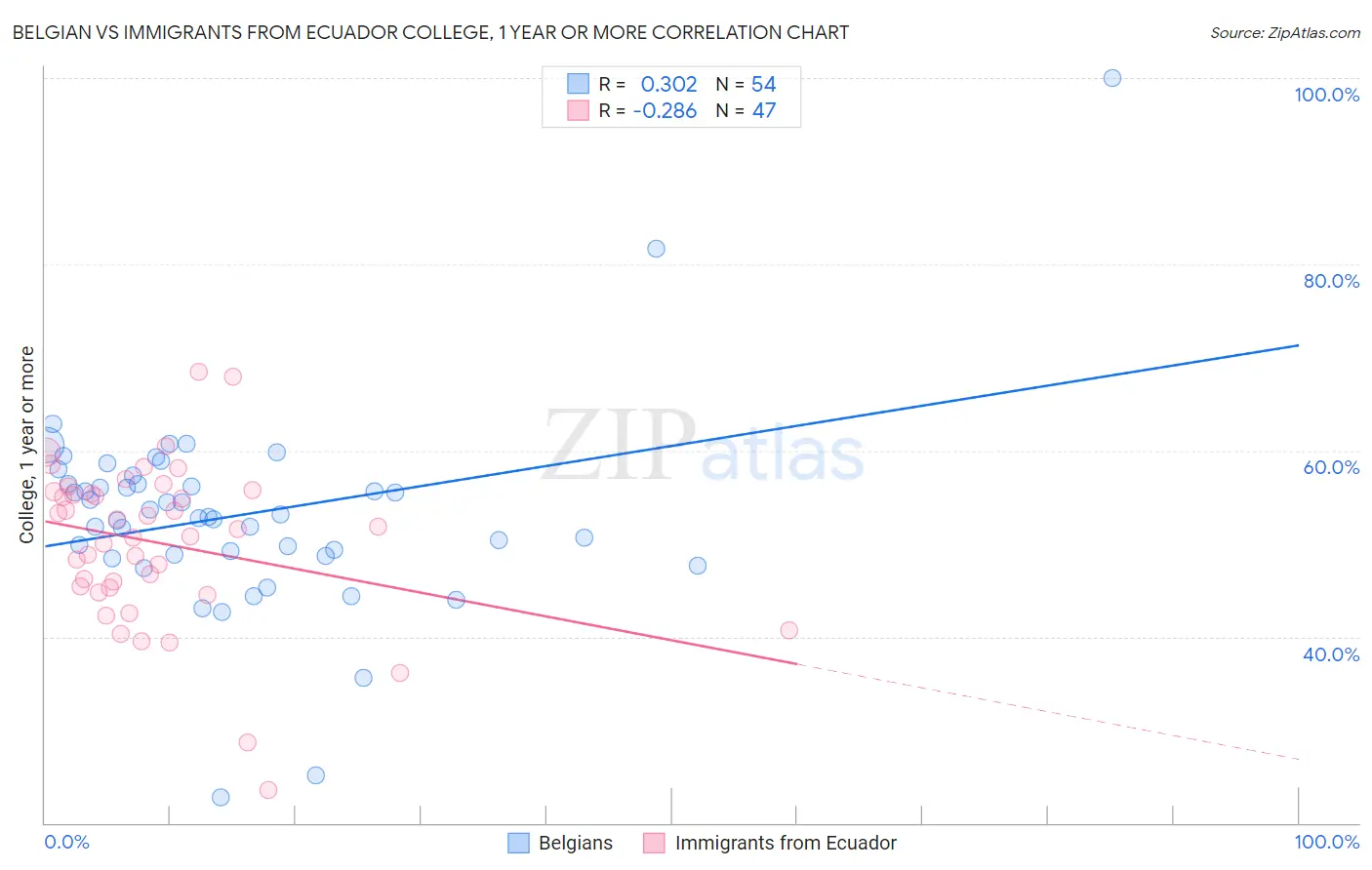 Belgian vs Immigrants from Ecuador College, 1 year or more Correlation Chart