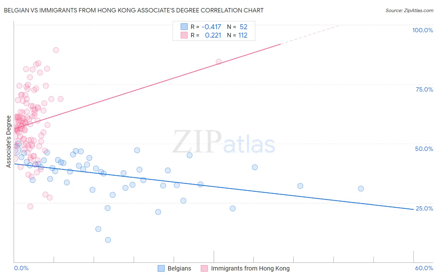 Belgian vs Immigrants from Hong Kong Associate's Degree Correlation Chart