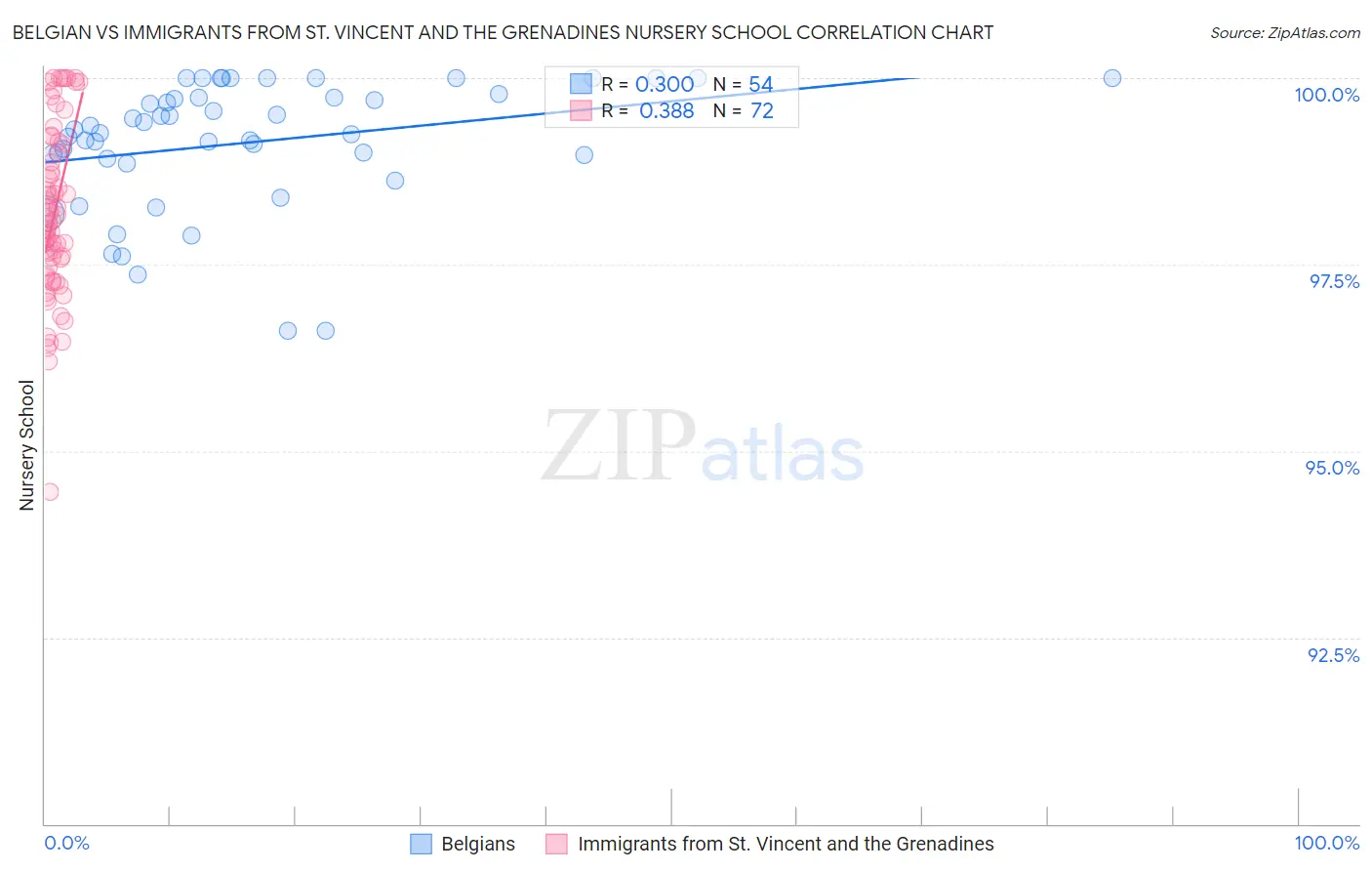 Belgian vs Immigrants from St. Vincent and the Grenadines Nursery School Correlation Chart