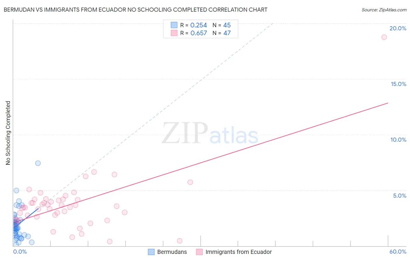 Bermudan vs Immigrants from Ecuador No Schooling Completed Correlation Chart