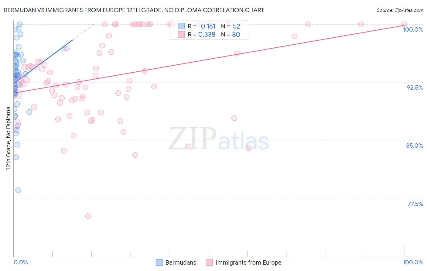 Bermudan vs Immigrants from Europe 12th Grade, No Diploma Correlation Chart
