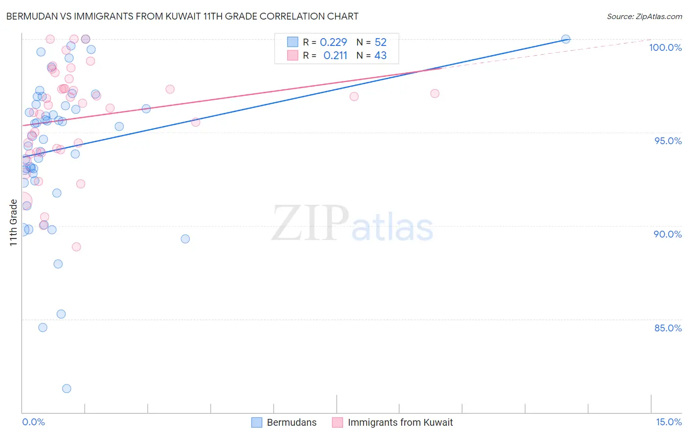Bermudan vs Immigrants from Kuwait 11th Grade Correlation Chart