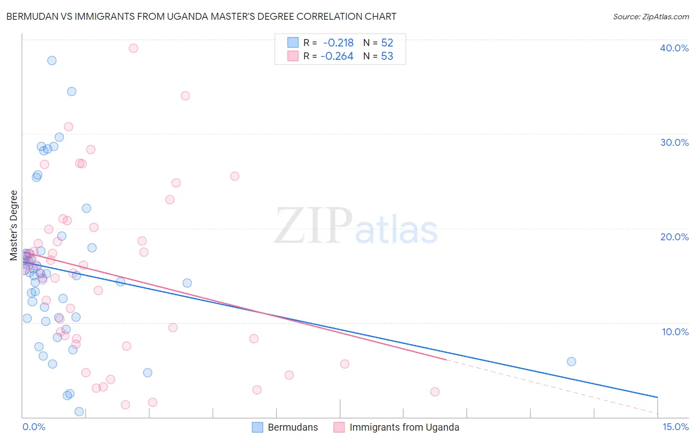 Bermudan vs Immigrants from Uganda Master's Degree Correlation Chart