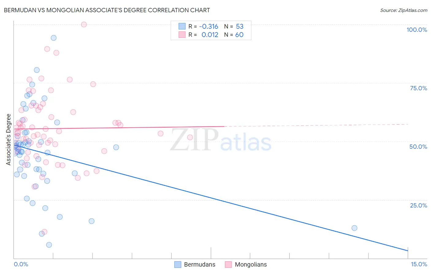 Bermudan vs Mongolian Associate's Degree Correlation Chart