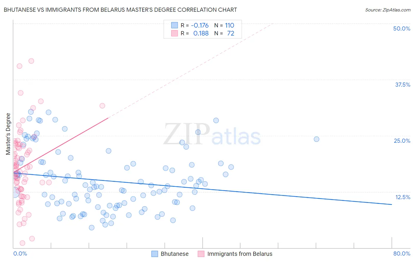 Bhutanese vs Immigrants from Belarus Master's Degree Correlation Chart