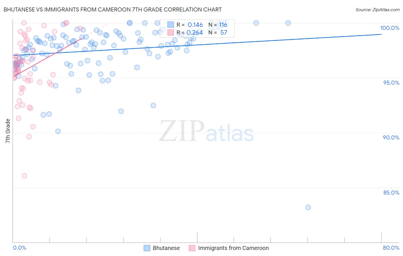 Bhutanese vs Immigrants from Cameroon 7th Grade Correlation Chart