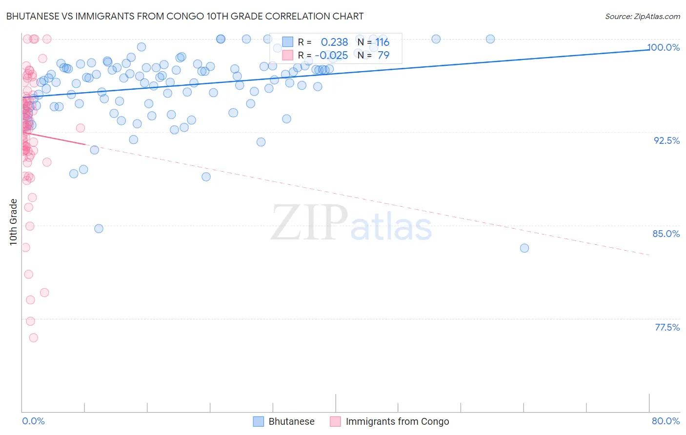 Bhutanese vs Immigrants from Congo 10th Grade Correlation Chart