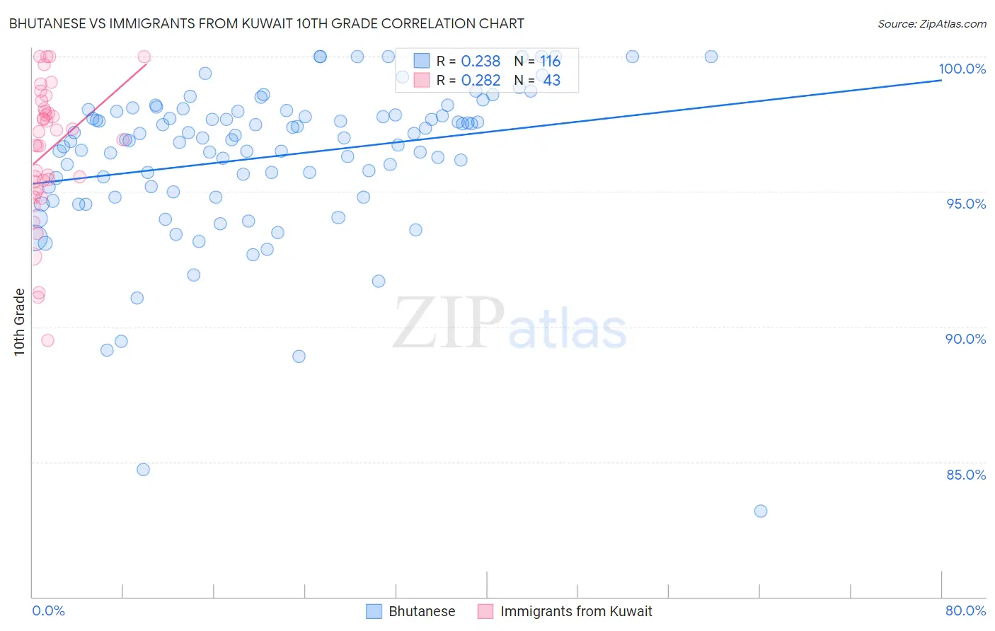 Bhutanese vs Immigrants from Kuwait 10th Grade Correlation Chart