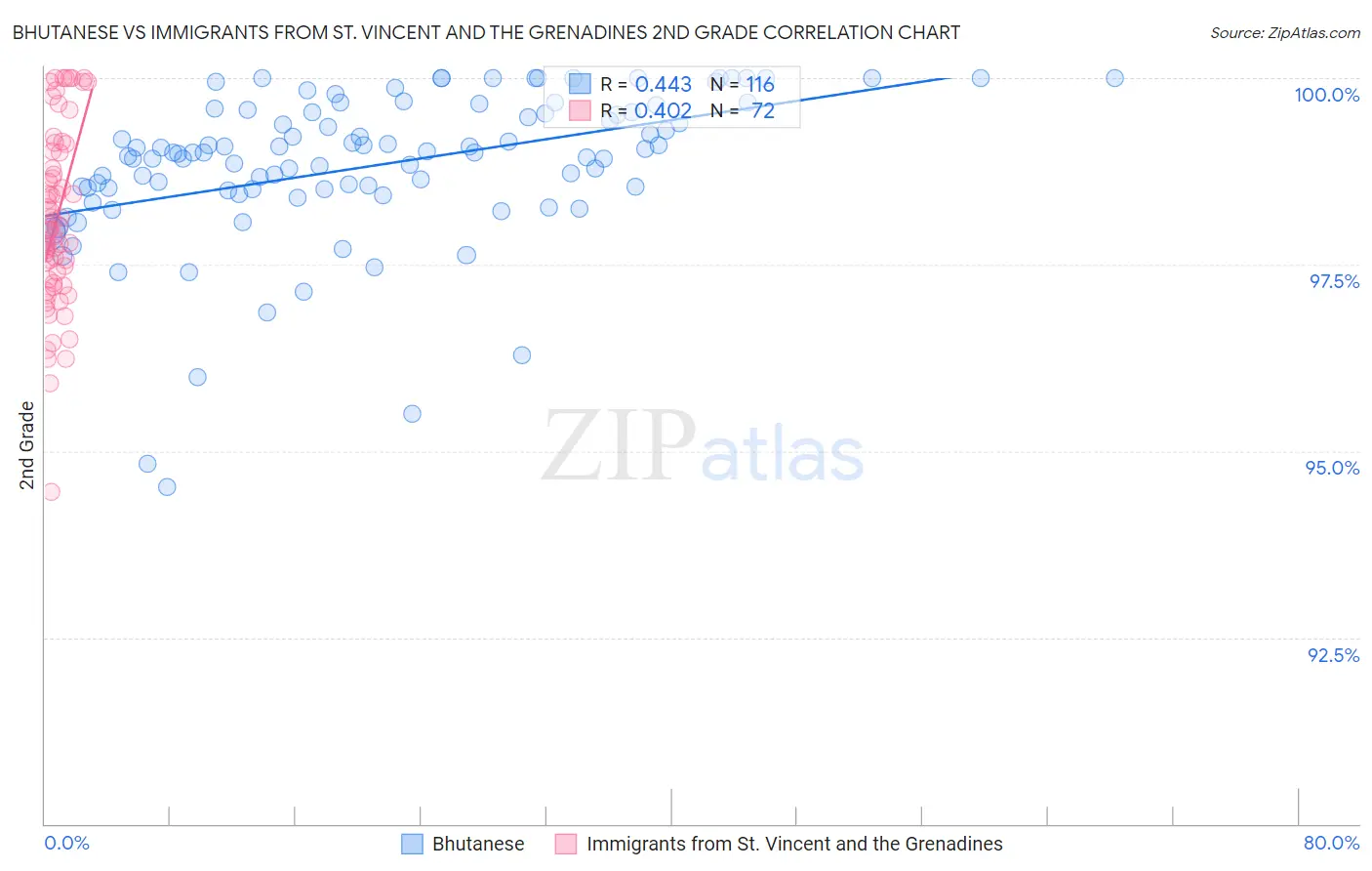 Bhutanese vs Immigrants from St. Vincent and the Grenadines 2nd Grade Correlation Chart